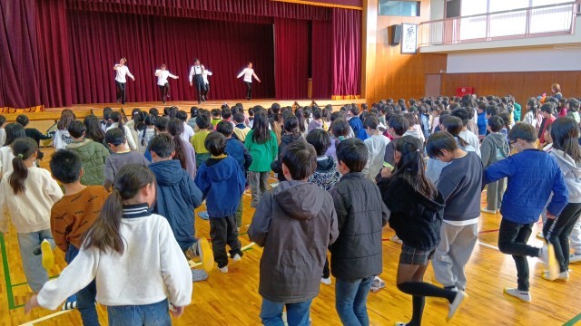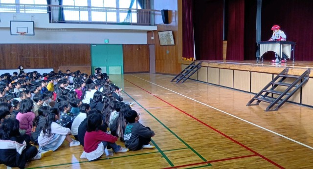 PTA主催行事として、「楽しいタップとクラウンショー」の公演を鑑賞しました。心躍るタップダンスやその体験コーナー、クラウンと極楽鳥の楽しい腹話術、華麗なジャグリング、美しい歌声とすてきなバルーン、コメディマジック、江戸時代から続く伝統芸能太神楽の圧巻の技!など、次々に繰り広げられる夢いっぱいの演目に子どもたちはあっという間に魅了されていました。また、新しいマリンバのお披露目も兼ねて、チャルダッシュの演奏をプレゼントしていただきました。