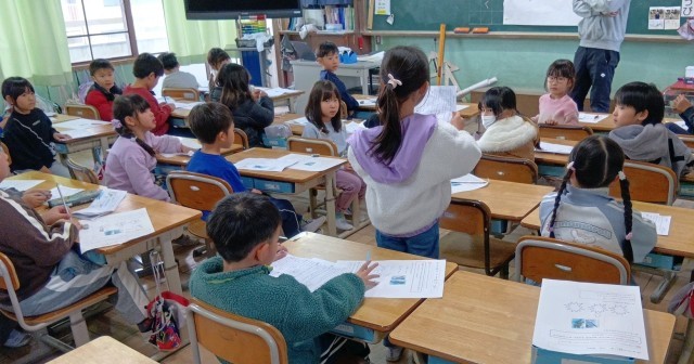 (1年)国語 物語文「スイミー」の音読です。どんなふうに工夫して読んだのか、クラスで交流しています。