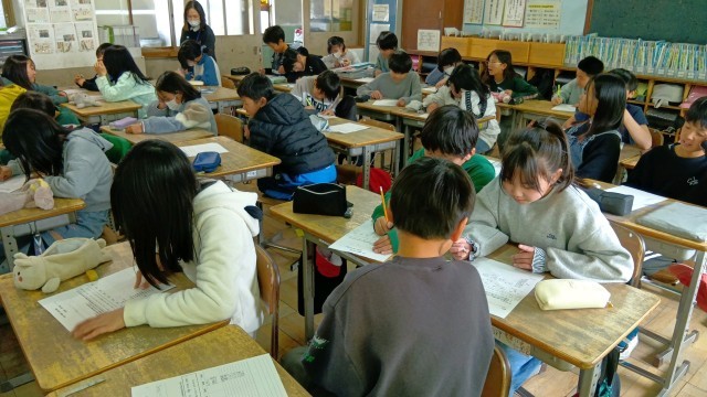 5年生が、災害時の食べ物について学習していました。家になる非常食を使って、1週間の献立を考えます。乾物、缶詰、カップ麺、チョコレートなど、普段家にあるものばかり。その中で「もしも」の場合どうするのか、子どもたちなりに一生懸命考えていました。