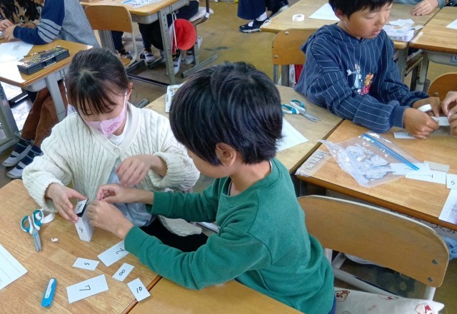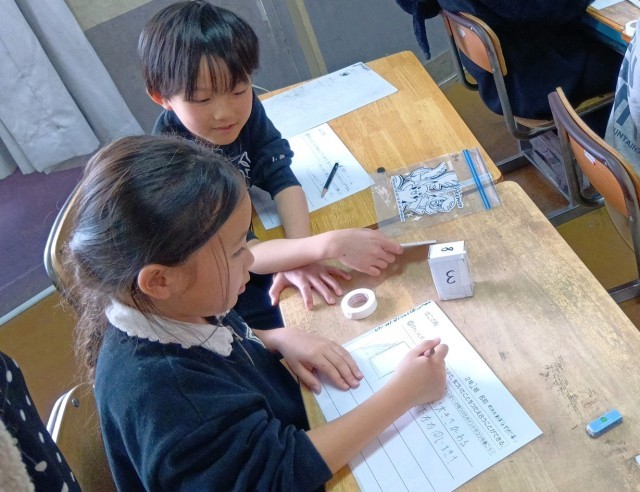 「はこの形」の導入の学習です。ペアで様々な大きさの長方形を実際に組み立てながら、気づいたことを伝え合うことができました。
