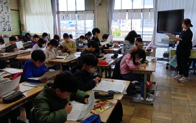 「作者がこの最後の一文で物語を終わりにしたのはなぜだろう」という問いをクラスみんなで考えました。叙述や挿絵をもとに、美しい日常が突然奪われる戦争の不条理を、自分の言葉で伝え合いました。