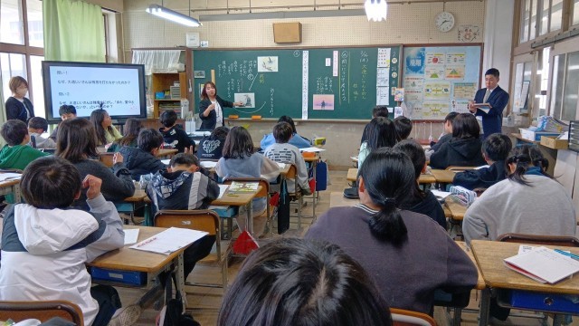 「なぜ、大造じいさんは残雪をうたなかったのか」という問いをクラスみんなで考えました。物語の構成や人物像について学習した内容を生かして、自分の意見を交流していました。