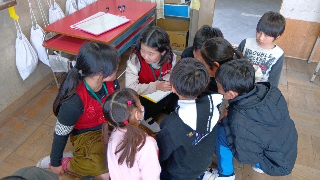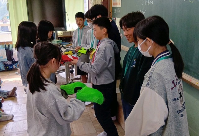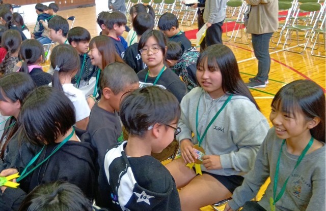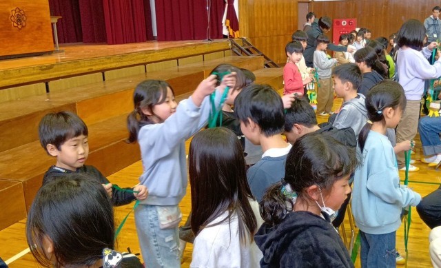 6年生から次のリーダーを引き継いだ5年生。ビブスをしっかり受け取りました。