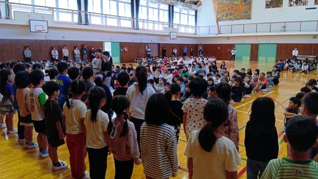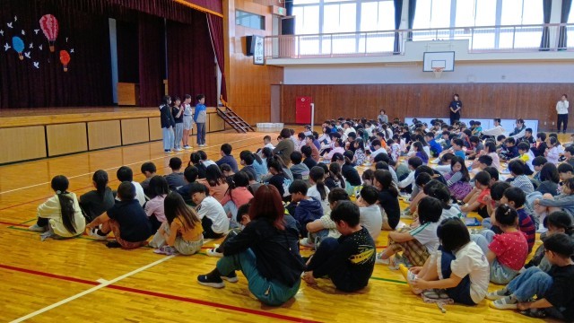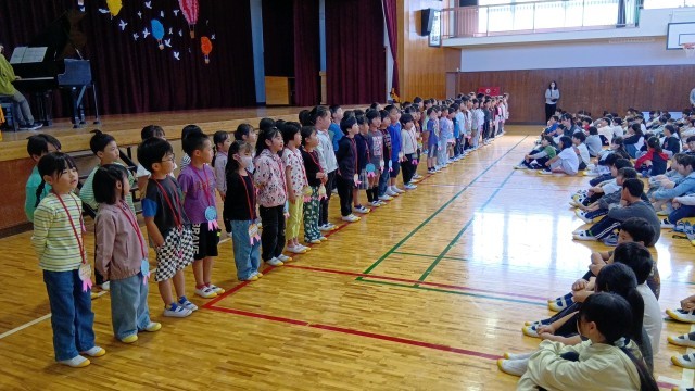 その後、泉小学校全員がそろって、児童集会を行いました。泉小学校のルールや放課後のマナーについて、たくさんお話がありましたが、本当によく聞くことができていました。6年生の話を聞く姿は、最高学年として立派でした。今後が楽しみです。