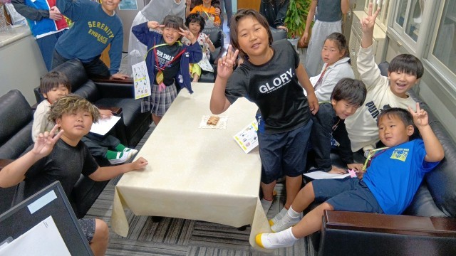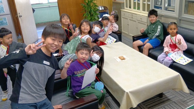 校長室に来てくれたみんなと仲良く写真撮影!歴代の校長先生の写真を見て、「あ!園長先生!」と声があがるかわいらしい一幕もありました。6年生が1年生にかける優しい言葉のシャワー。とてもすてきなひとときでした。