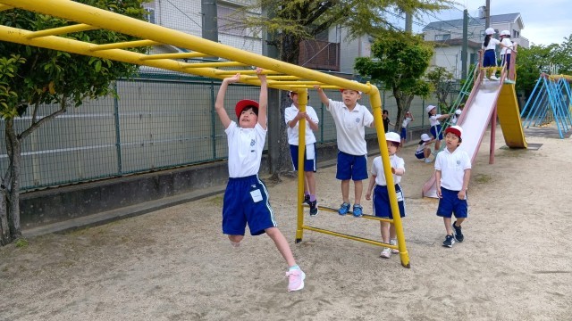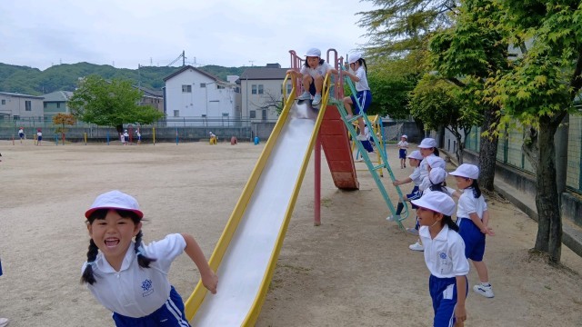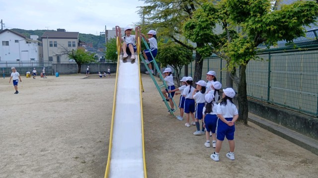 今日の長休みから1年生も運動場で遊びます。滑り台やうんていには、長い列ができていましたが、みんな上手に順番を待つことができていました。飼育小屋のうさぎ(バニラちゃん)を見に来ている子もいましたよ。