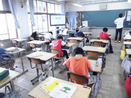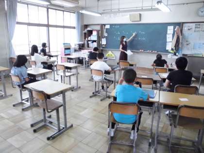 5年生は小数のわり算で、答えを四捨五入して上から2けたの数にするやり方について学習していました。小学校の計算の領域では、みんなつまづきやすいところで、教室でも何度も練習問題に挑戦していました。