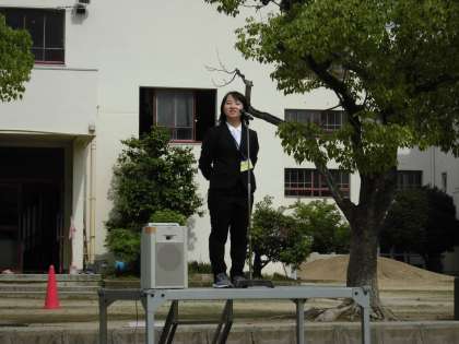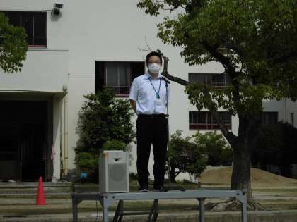 新しく来られた先生の挨拶の時には、みんな元気に「よろしくお願いします」と挨拶しました。子どもたちも笑顔で迎えました。