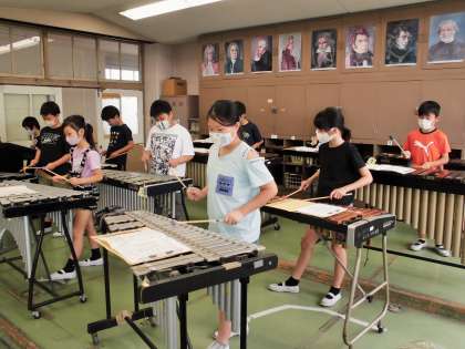しばらく自己練習をした後、みんなで合奏します。