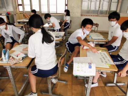6年生が少人数指導で、線対称と点対称について学んでいます。