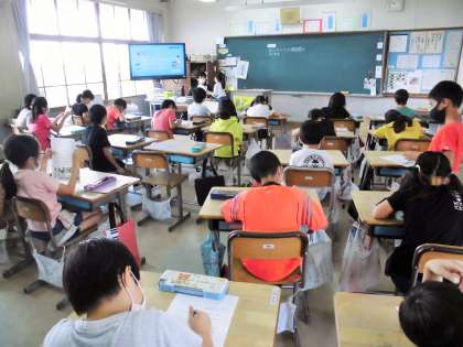 総合学習では体の不自由な人を補助する「補助犬」について動画で学び、「分かったこと」や「気付いたこと」や「思ったこと」を書きました。