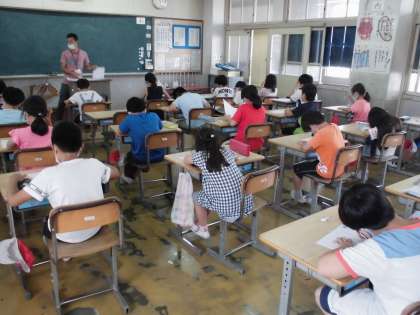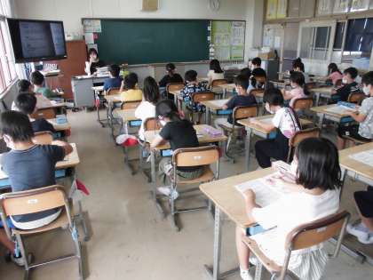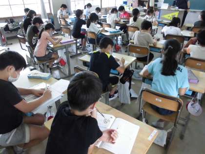 また、算数で先生から棒グラフについて説明を受けたあと、(友だちと教え合ってもいい)自主学習を進めているクラスもありました。