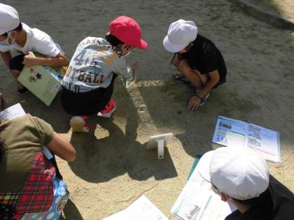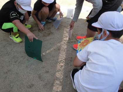 今日はちょうどよく晴れて、理科の実験にはうってつけの日でした。