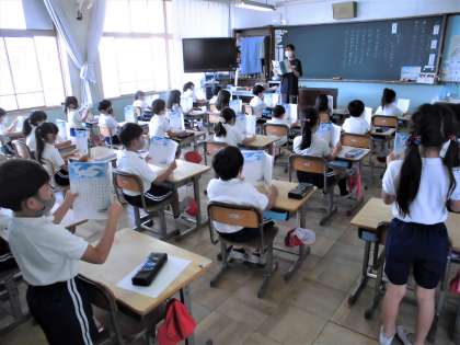 「ゆっくり、大きな声で、まちがえずに、気持ちをこめて」読むことをポイントにしています。一人が読み終えると、良かったところを先生が伝えています。