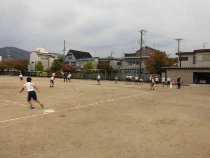 キックベースクラブは試合形式になると大いに盛り上がります。
