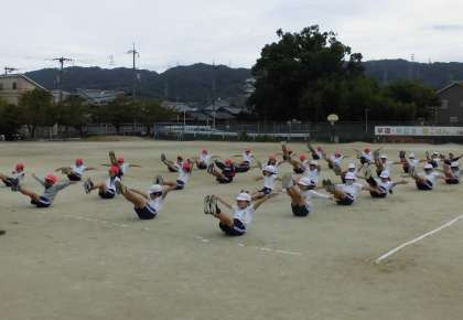 5年生は体育で組体操の一人技をやってみました。