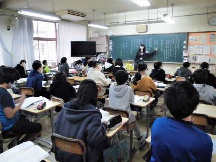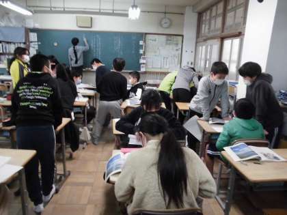 6年生は国語で「仮名の由来」について学習しています。万葉仮名を使って、自分の名前を書いてみたり、言葉や文を作って、友だち同士で読み合ったりしました。