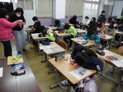 代表委員会では学校のみんなに守ってもらいたいルールをポスターにしていました。