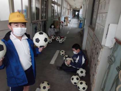 体育委員会では体育館と運動場の体育倉庫の整理やボールの空気入れなどを頑張りました。