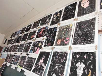 教室後ろに掲示されている版画作品も素敵でした。