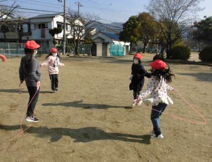 ドッジビーや縄跳び、しっぽとり鬼など、どの遊びも大人気です。