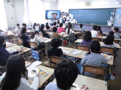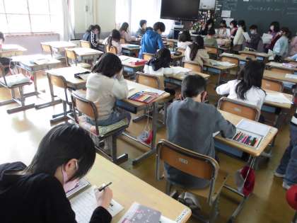 2年生は6年生の卒業式の時に体育館の壁に飾る「壁面飾り」を作りはじめました。子どもたちが言うには、クラッカーが弾けて、みんなの顔が飛び出すような飾りになるそうです。元気な2年生のたくさんの顔が「おめでとう!」と言うのかもしれません。