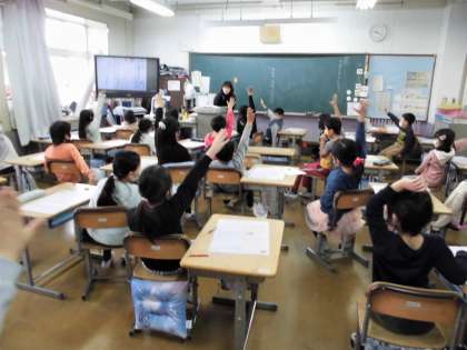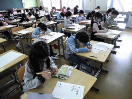 2年生は生活科で自分が生まれてから今までの成長を振り返って、お家の人へのお手紙を書いています。今日は清書の清書で、一生懸命仕上げていました。