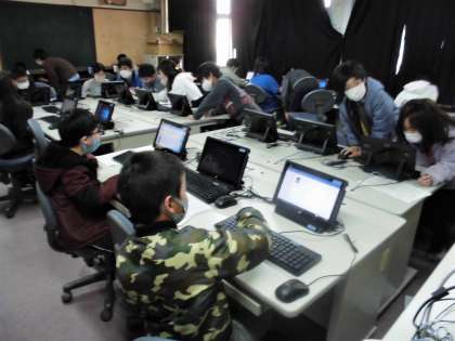 コンピュータークラブでは、自分の顔写真が入った特製名刺づくりをしていました。面白いマイ名刺ができあがりました。