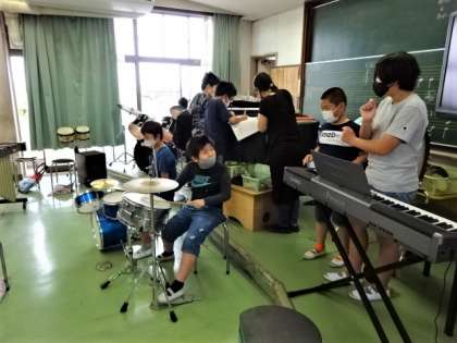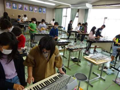 音楽では「ラバースコンチェルト」の合奏練習をしています。友だちとも教え合っている姿が見られます。