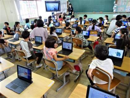 1人1台端末のパソコンの使い方も習いました。インターネットに接続をすることができました。