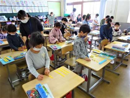 2年生は算数で「たし算」の学習をしています。今日は、24+15で、算数ブロックを使って、計算のしかたを考えました。