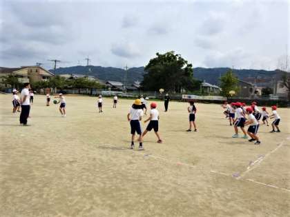 3年生は体育でドッジボールをしています。ボールが2つのドッジボールで、よく見ていないと当てられてしまいます。大いに盛り上がっていました。