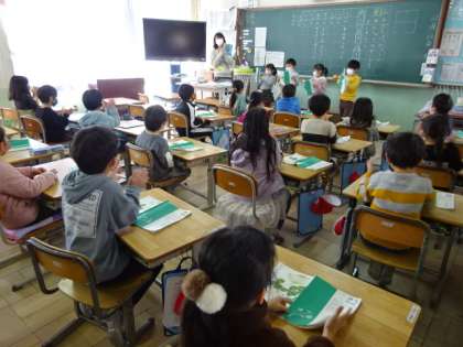 1年生は国語で音読発表会を行いました。みんなとても上手に音読ができるようになりました。