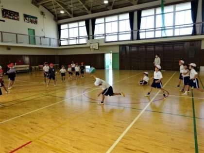 体育ではドッジボールをして、大いに盛り上がりました。
