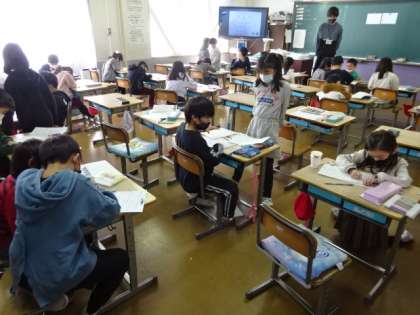 2年生は国語で「手作りおもちゃの作り方ブック」作りや漢字練習をしています。