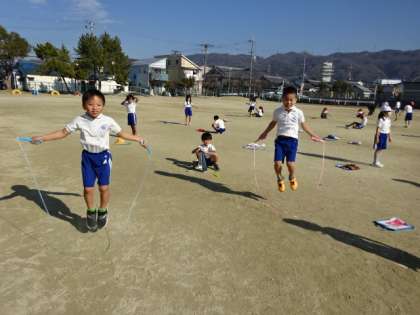 体育ではなわとび頑張りカードで、二重とび練習の成果を披露してくれました。