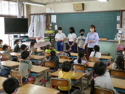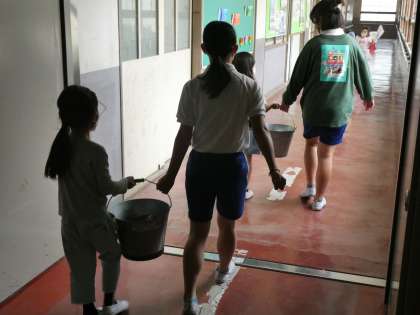 6年生のお兄さん、お姉さんに教えてもらいながら1年生のみんながお掃除をがんばってくれました。6年生は丁寧に、やさしく教えてくれました。ありがとう。