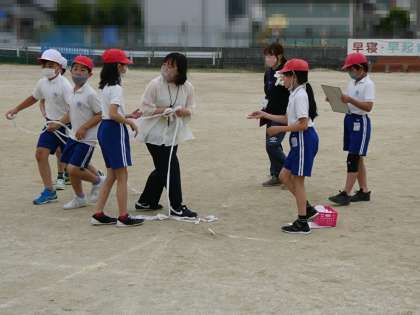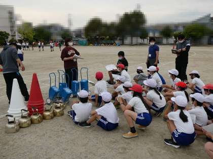 子どもたちが運動会準備活動をがんばっていました。先生たちも一緒にがんばっています。みんなありがとう。