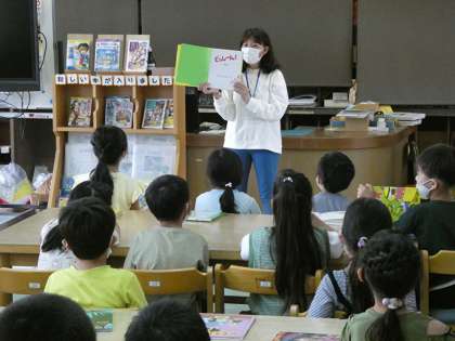 今日は図書司書の先生が読み聞かせをしてくれていました。みんな一生懸命に聞いていました。読み聞かせのあとに先生からたくさん質問がありましたが、手をあげてこたえていました。本をたくさん好きになってくださいね。