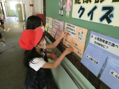 休み時間に健康診断クイズに挑戦していました。クイズは正解したかな。。。3時間目もみんながんばって勉強してくださいね。