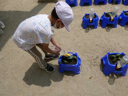 午前中の20分休みの間にもかかわらず、子どもたちが水やりをしていました。植物を育てるやさしい気持ちがすてきです。