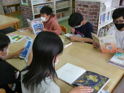 4年生が図書室で読書の時間を過ごしていました。図書司書より、新しい本の紹介もありました。さぁみんな、一年間で何冊読めるかな。