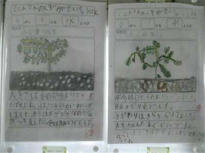 植物の観察を絵にして書いていました。「あさがお」と「トマト」です。5年生は習字で「道」の字を見事に書いています。絵をかいたり、習字は感性豊かにしたり、磨くことによい時間ですね。