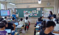 定期的に子どもたちが朝のアサガオへの水やりの風景をみます。どんどん大きくなってほしいです。いつも水やり、ありがとう。最後はみんなでハイポーズ!