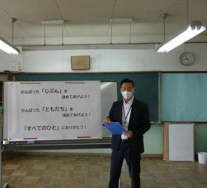 校長先生からは運動会が終わったことをうけて、3つのことをみんなに伝えました。