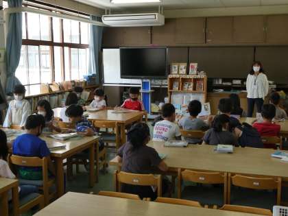 3年生が図書室で本読みと読み聞かせの時間を過ごしていました。みんなどんどん本をかりて読んでくれています。本を読んで何を感じたか、感想を一度聞いてみたいです。