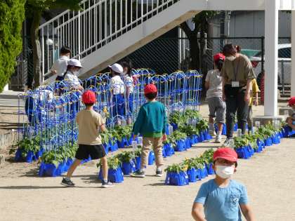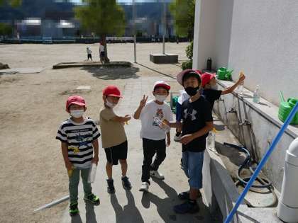 学校の風物詩にもなってきている「朝の水やり」です。学校で育てているひまわりも夏にはさらに大きくなってみんなに大きなひまわりの顔を見せてくれそうです。