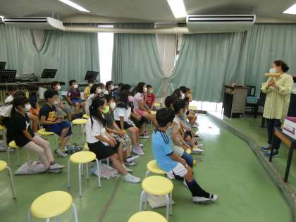 3年生は音楽の時間でした。楽器の使い方や音の変化をみんなで確認していました。同じトライアングルでもたたく棒の長さや質で音の質も変わりますね。違いにみんな気づいていたようです。