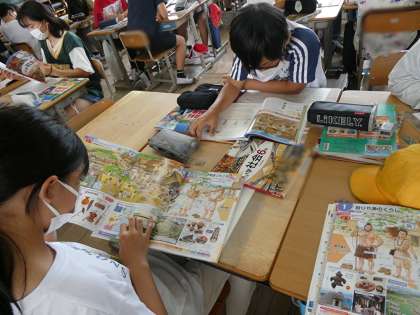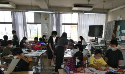 社会で歴史の勉強をしていました。ノートの書き方、まとめ方も学んでいました。隣のクラスではカメレオンが再度登場しました。