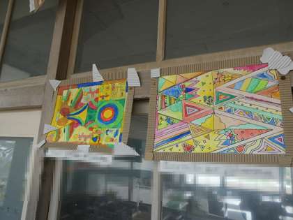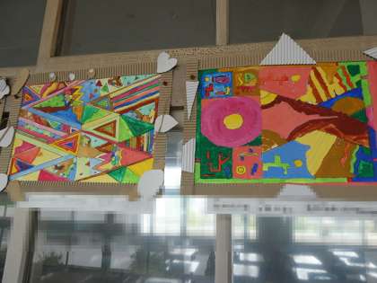 とてもステキな彩りがキレイな絵が3年生の教室前に貼られていました。きれい、あざやか、空想など、いろんな言葉がこの絵から感じられます。みんなの創造力は見事です。